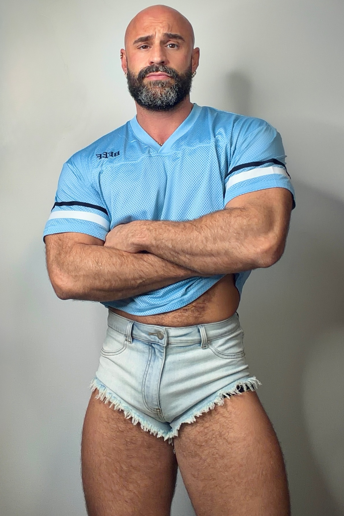 • Fun printed chest logo says "beef"